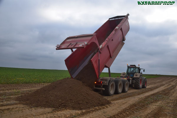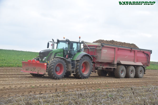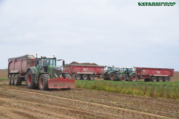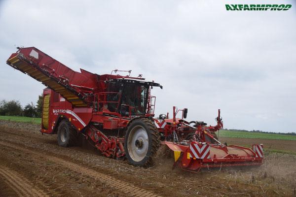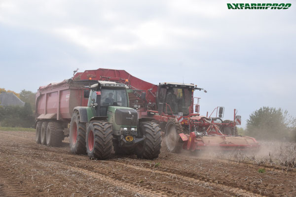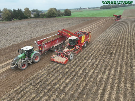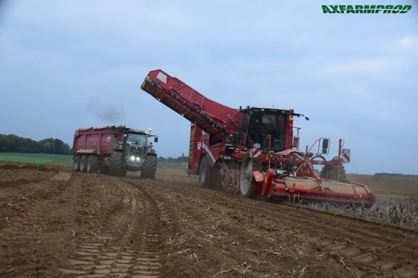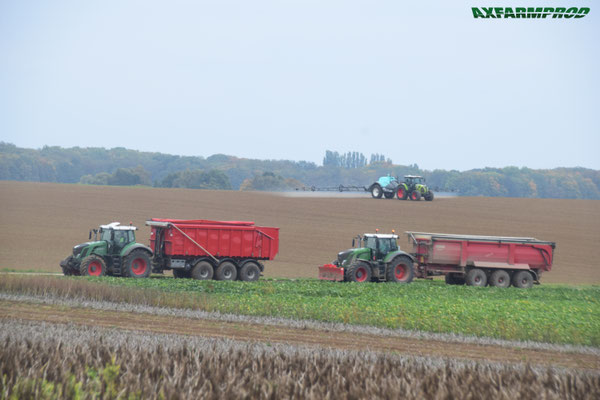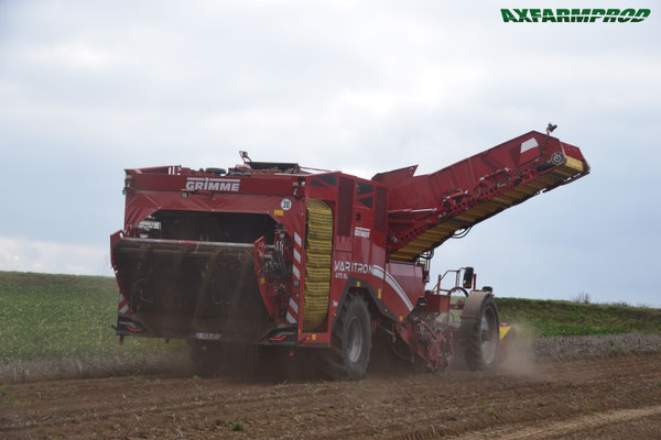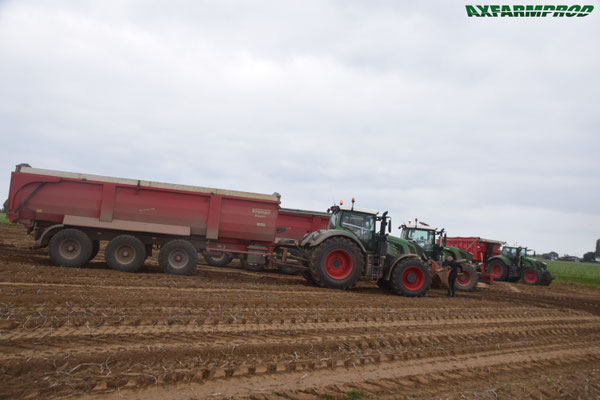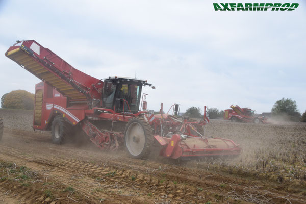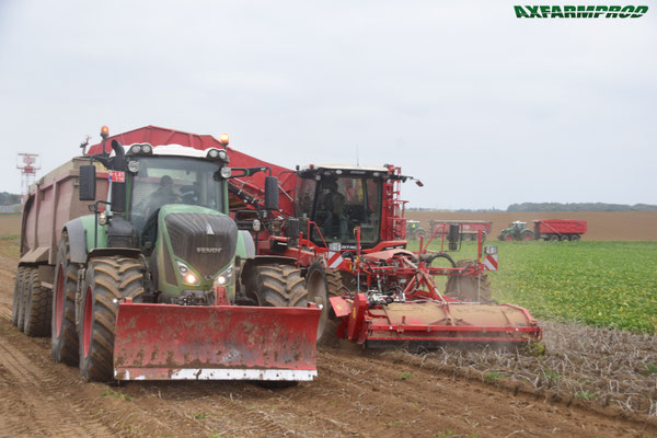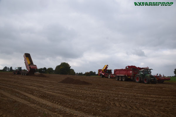 2 arracheuses automotrices Grimme 4 rangs, une Varitron 470 ainsi qu'une nouvelle Varitron 470 XL. 6 tracteurs Fendt 828 , 930 et 933 sur des bennes 3 essieux Krampe ainsi qu'un porte container
