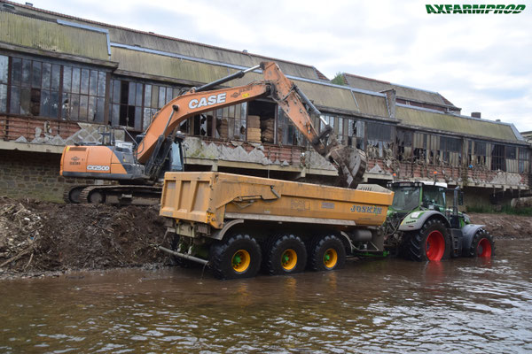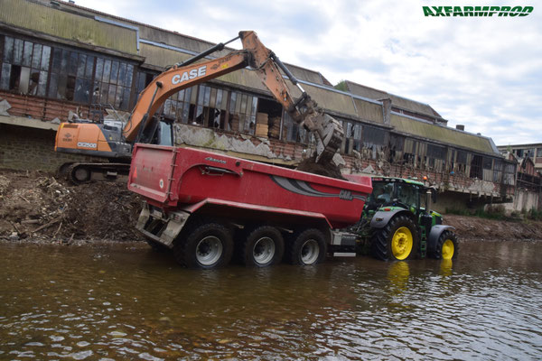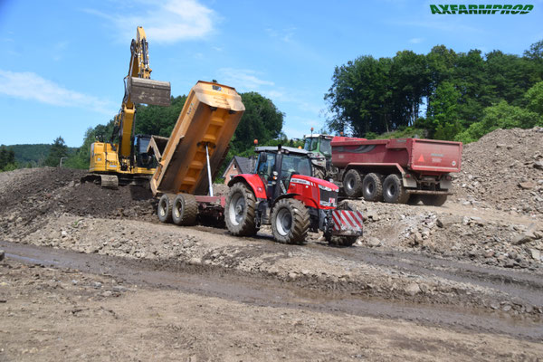 Sur la première partie du chantier, une excavatrice Case CX 250D et 9 tracteurs.