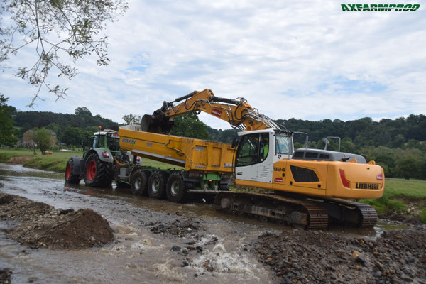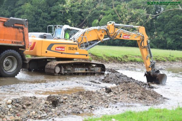 La réfection des berges de la Vesdre, qui furent ravagées lors des inondations de juillet 2021.. L'armée Belge à d'abord commencé le travail, et puis donc des entreprises de terrassement pour finalisé ceci.