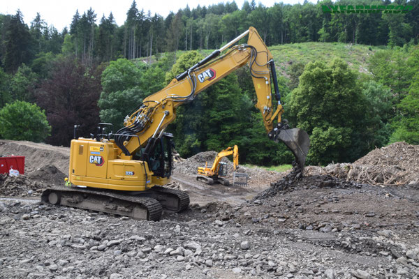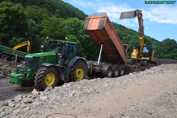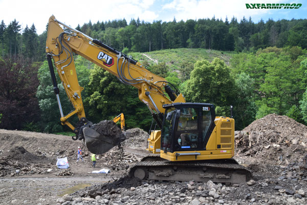 Pour un accueillir tous ce cubage de terres et pierres, 3 grues dont une Caterpillar 325, JCB et ?